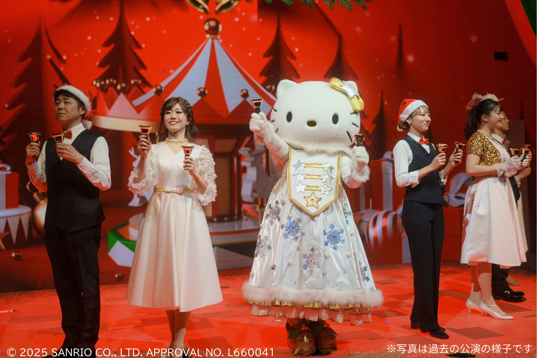 幻想的なステージ演出と、クリスマスムードたっぷりの音楽に包まれながら、ハローキティと過ごす特別な夜をお楽しみください🌙🎄