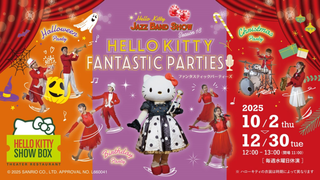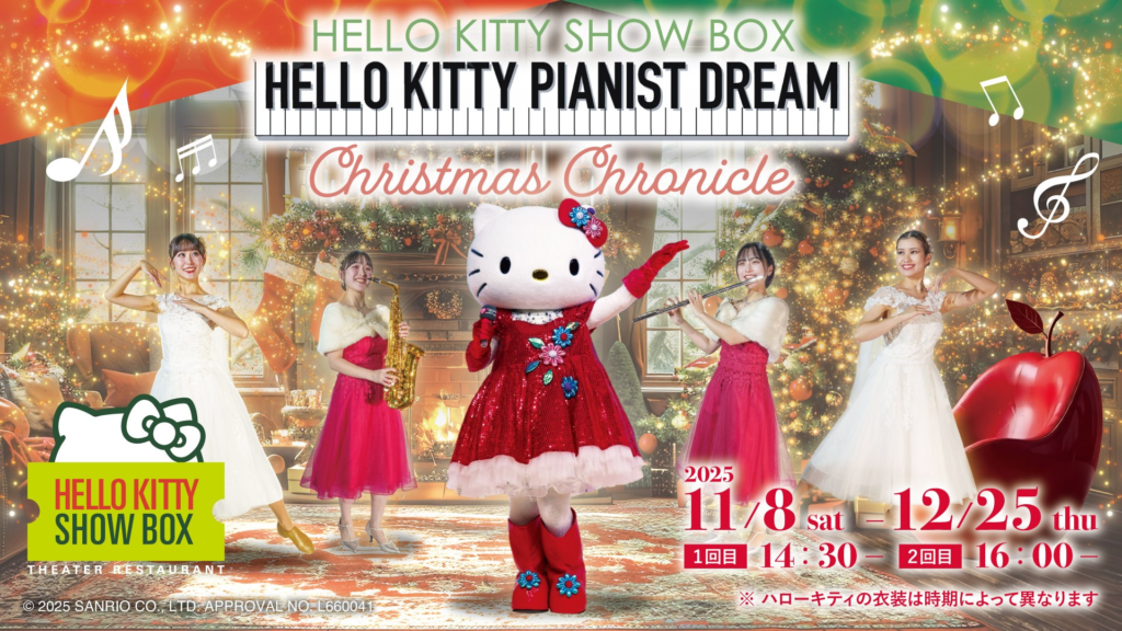 ランチ・カフェ・ディナーと、時間帯ごとに楽しめるハローキティ ショーボックスのクリスマス公演🎄ご家族やご友人、パートナーと一緒に、この季節だけの特別なショー体験をぜひお楽しみください。皆さまのご来場を心よりお待ちしております😊