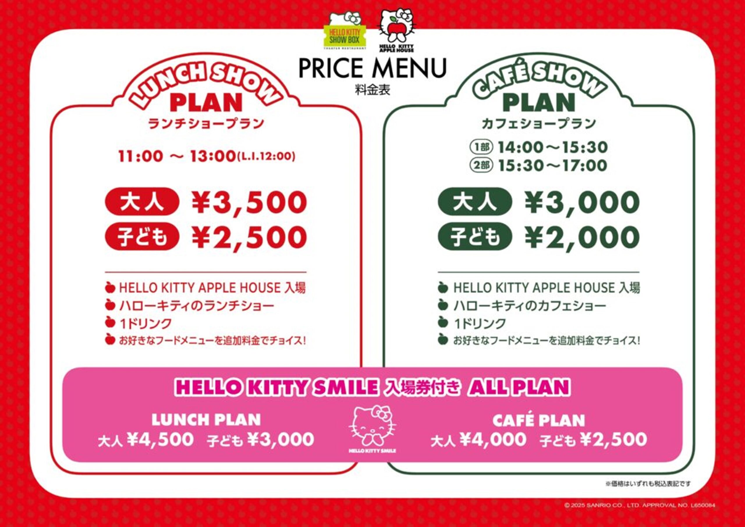 *1ドリンク付き。隣接施設「HELLO KITTY APPLE HOUSE」の入場料も含む
