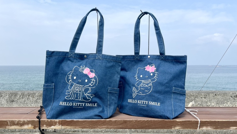 乙姫の衣装を着たハローキティと人魚の衣装を着たハローキティがプリントされているデニムトートバッグです!