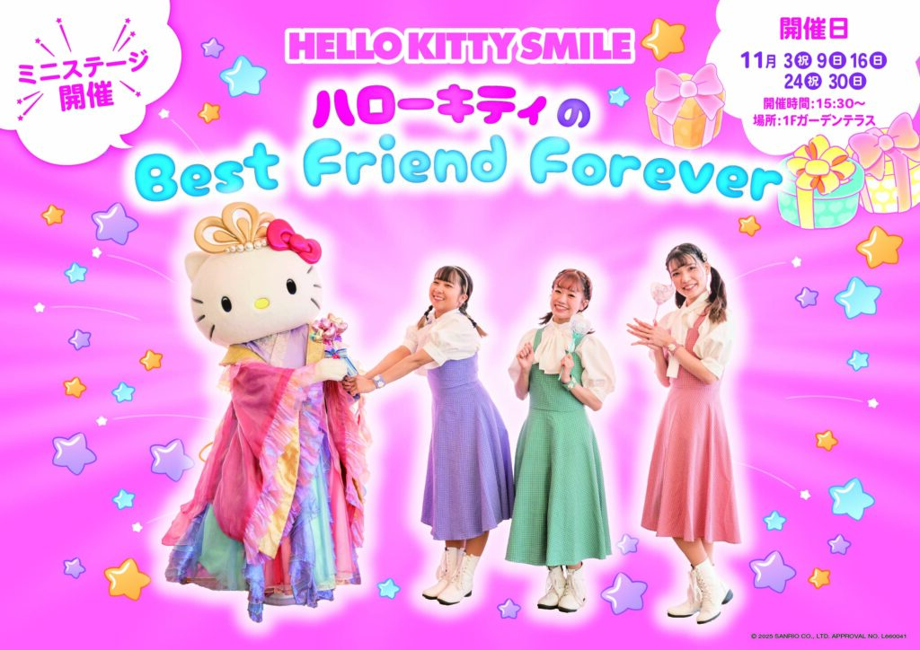 HELLO KITTY SMILE 1階「GARDENテラス」では、ハローキティお誕生日を記念した参加型ミニステージを開催!