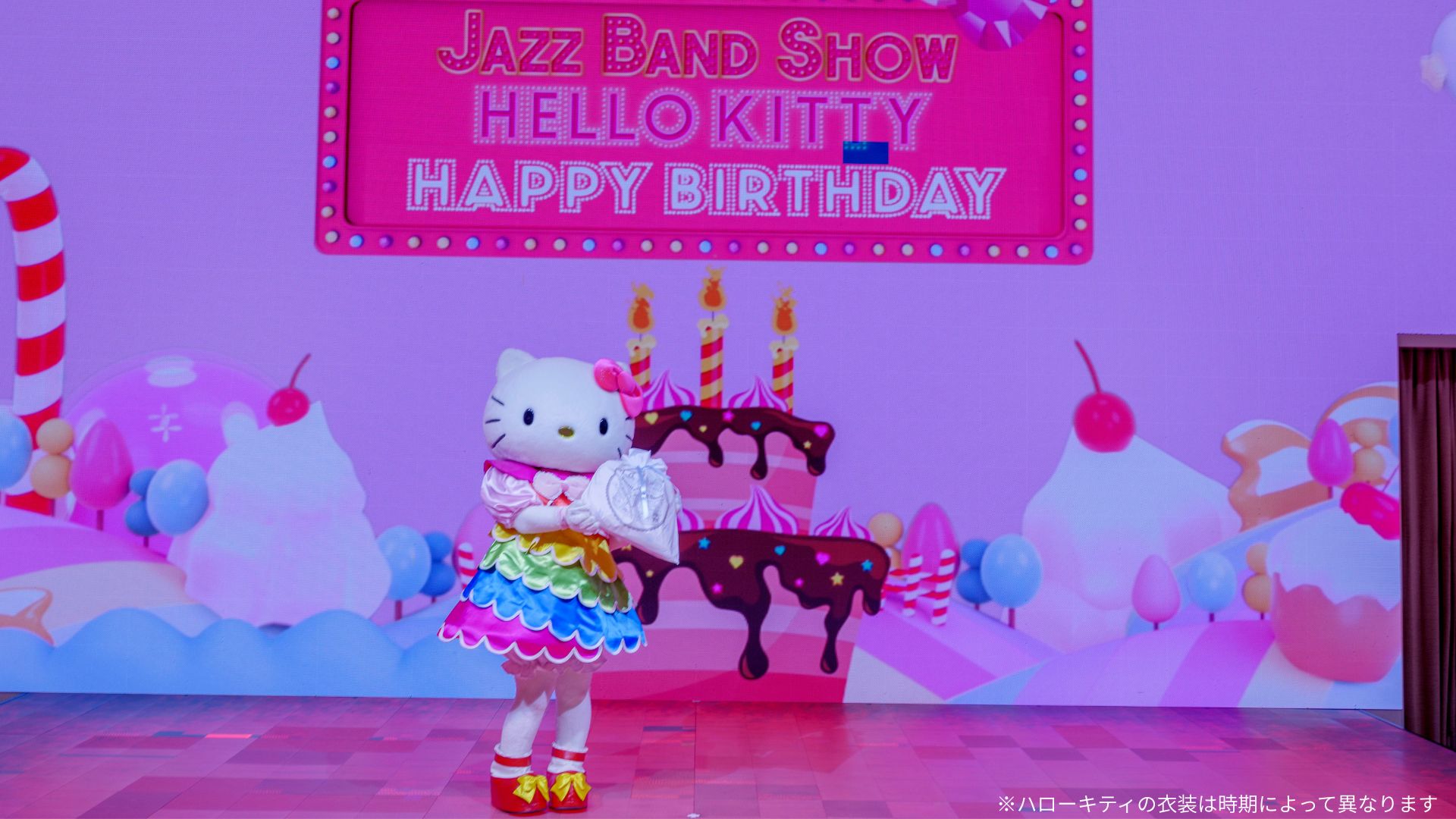 ジャズバンドとともにハローキティをお祝いするステージには笑顔と驚きがいっぱい。特別演出も登場します!