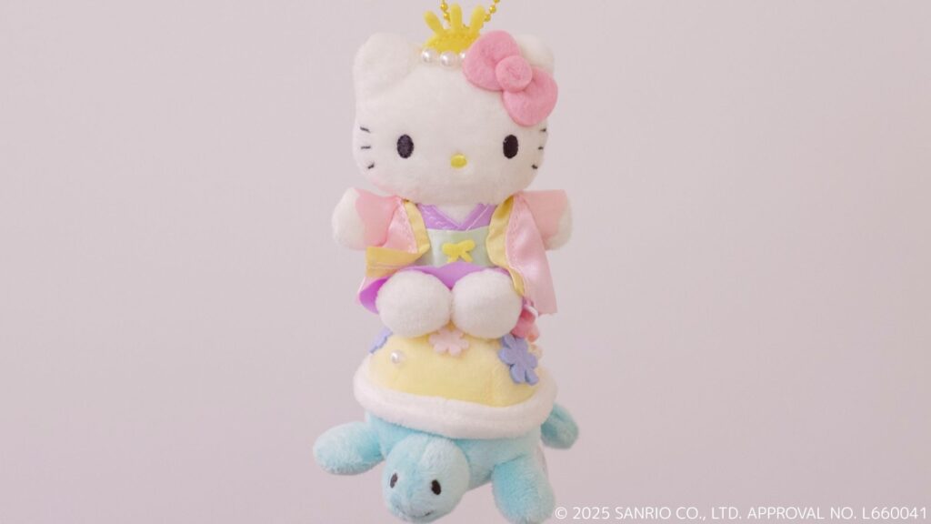 乙姫の衣装を着たハローキティがカメにちょこんと乗った愛らしいデザイン!