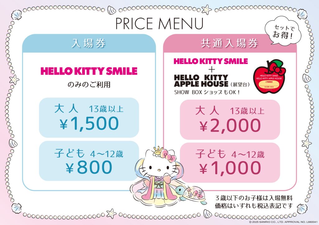 先ほどご案内した「HELLO KITTY SMILE」と「HELLO KITTY APPLE HOUSE」の入場券がセットになった「共通入場券」も販売中!