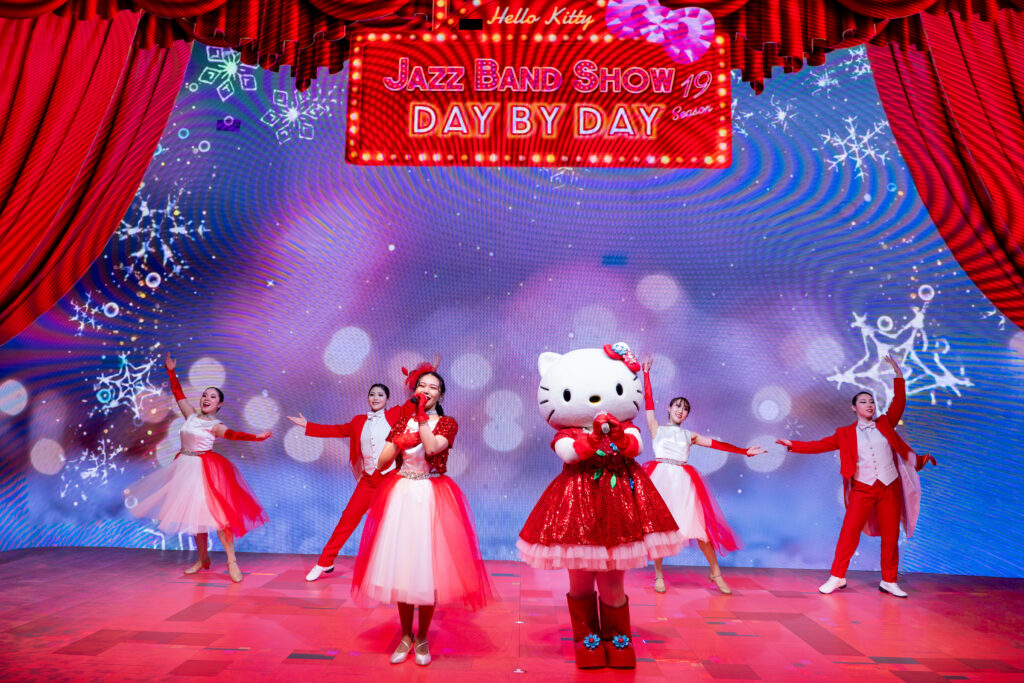 バンドリーダーのハローキティが、歌って・踊って・トランペットを演奏する本公演は、ジャズの名曲を生演奏で楽しめる、大人可愛いステージとして多くのお客様にご好評をいただいています。