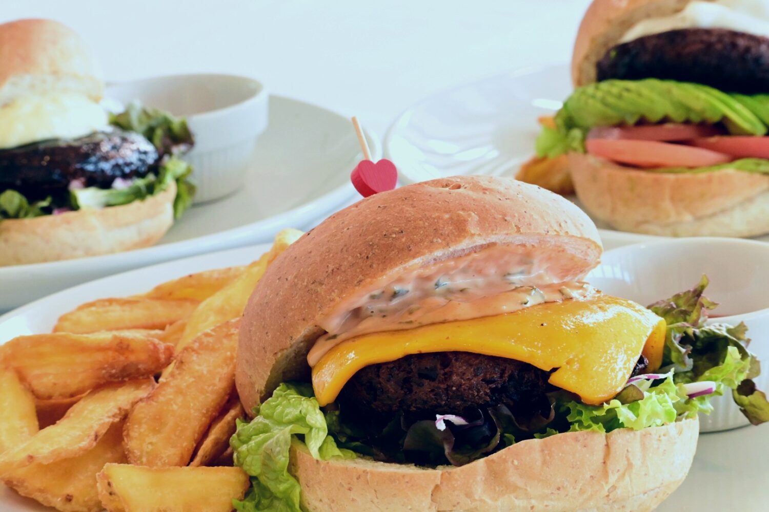 まず、ご紹介するメニューは【ヴィーガンチーズバーガー】です!