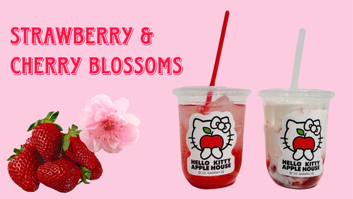 HELLO KITTY SHOW BOXに春のカフェタイムにぴったりな、見た目もかわいらしいいちごドリンクが期間限定で新登場しました🍓🌸