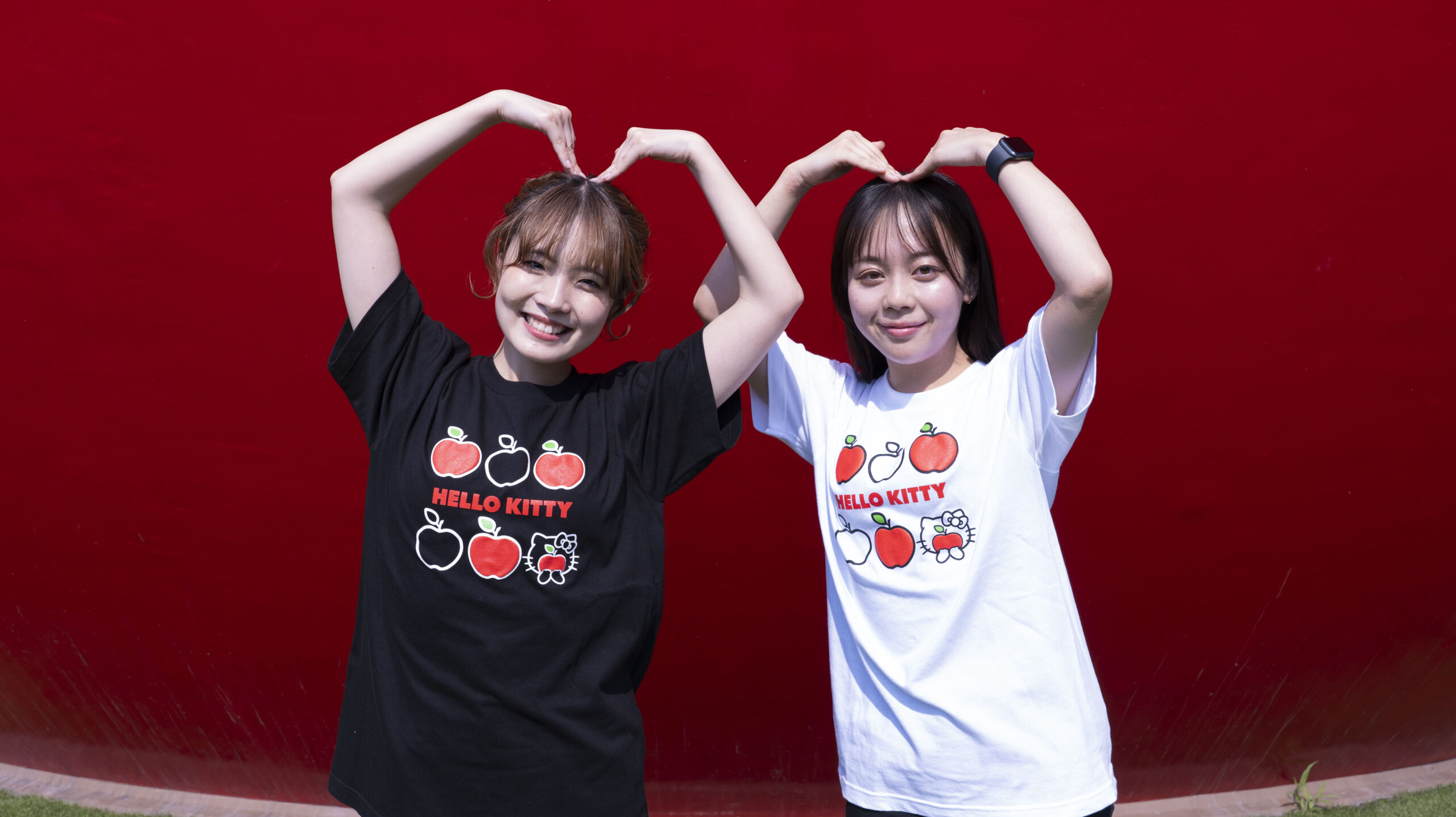 ハローキティがりんごでお顔を隠したロゴは、ここだけでしかゲットできません👀❤