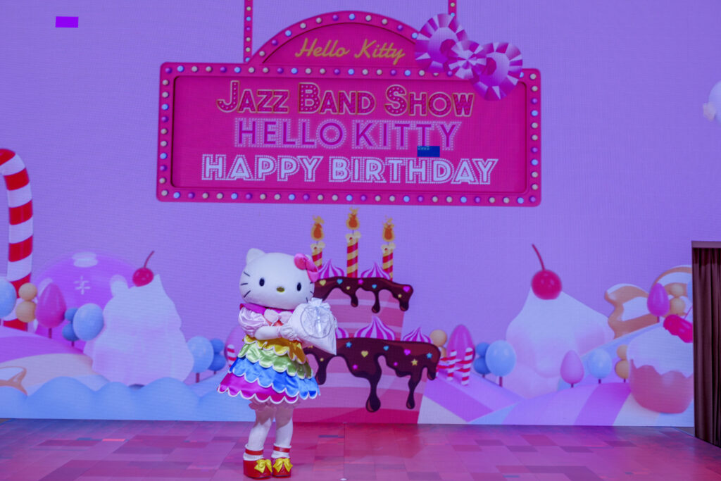 会場に響くジャズの音色と、ハローキティの登場が、誕生日のワクワク感を一層高めてくれます。