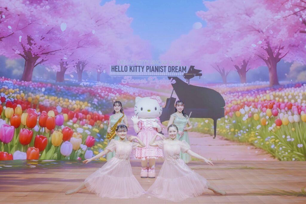春を感じられる胸躍る時間をハローキティとダンサー、ミュージシャンがお届け。このショーを観ることができるのはこの季節だけ!