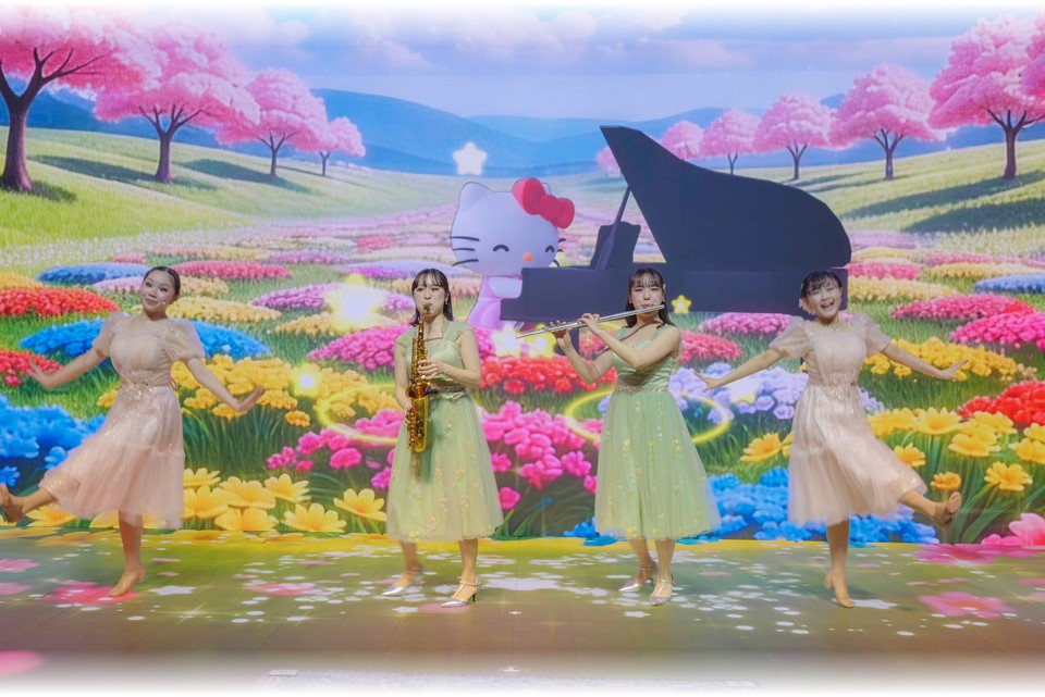 ハローキティたちが奏でる音楽が新しい季節の始まりを祝福する。