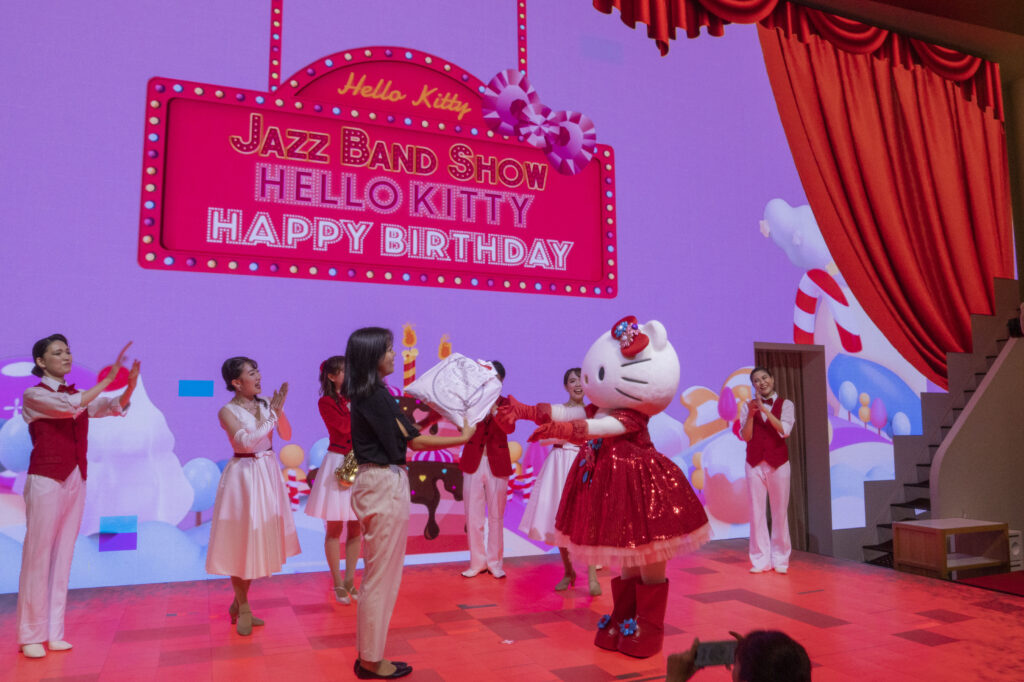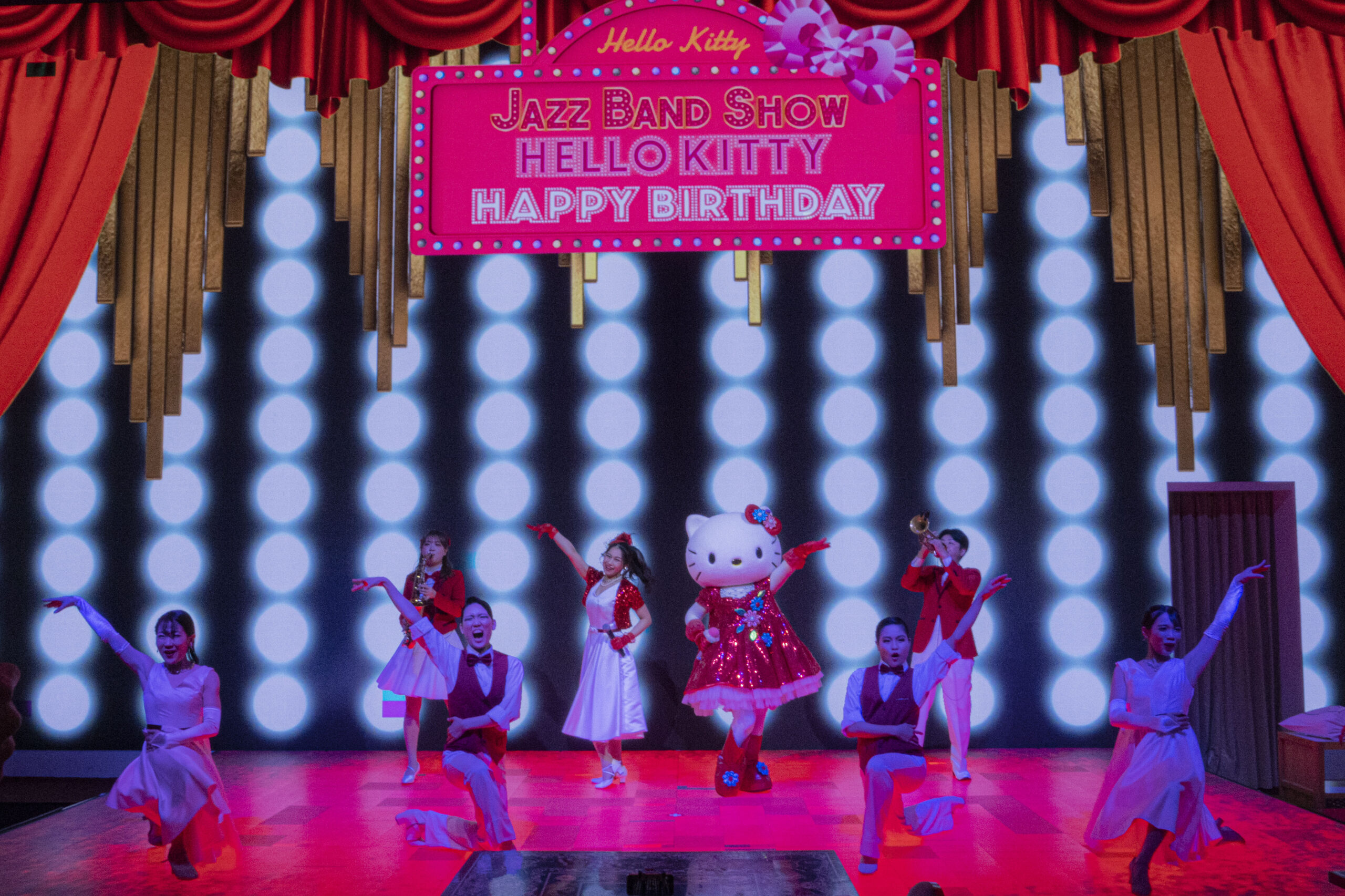 ジャズの生演奏とともに、ハローキティが誕生日を華やかにお祝い。