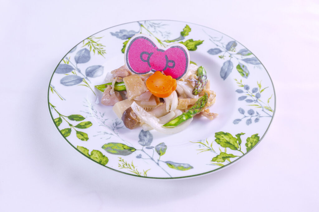 淡路島産の鶏むね肉をヘルシーに炒め、旬の野菜と藻塩のシンプルな味付けで春の風味を引き立てます。あっさりしているので、どなたでも食べやすい一皿です!