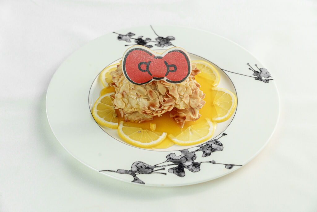 ふんわりした白身魚に香ばしいアーモンドの衣をつけて揚げ、レモンのソースでさっぱり仕上げた春らしい一皿。🍋軽やかで食べやすく、女性にも人気です♪