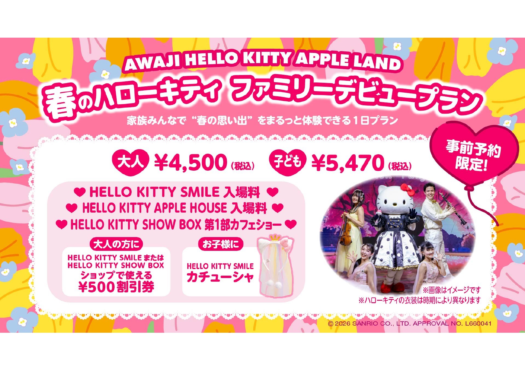この春は、AWAJI HELLO KITTY APPLE LANDの「春の事前予約プラン」で、特別な1日をお過ごしください。